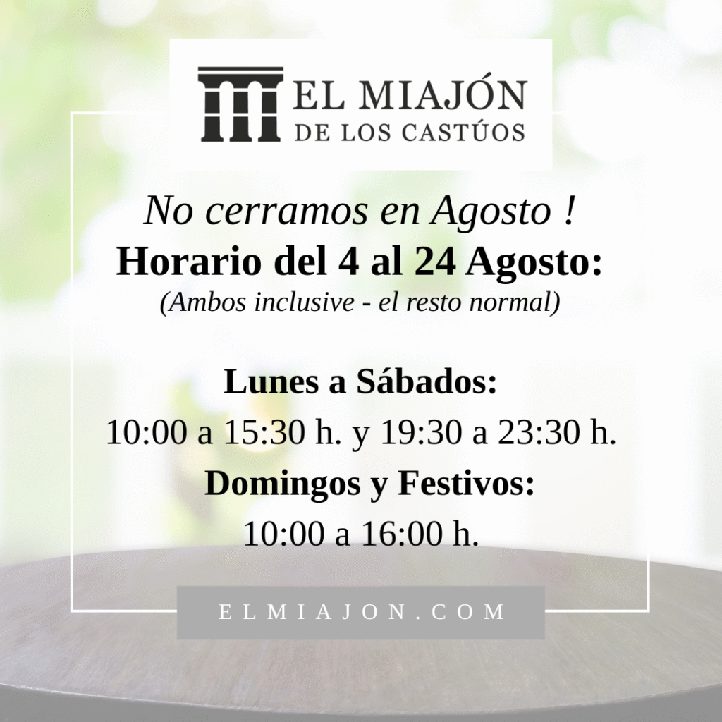 En agosto seguimos con nuestro horario habitual, salvo del 4 al 24 de agosto con horario especial de verano, para