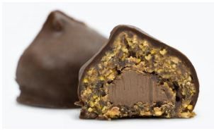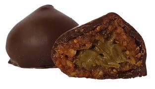 • Caja 12 Bombones de Higo Rellenos de Crema de Pistacho al 70% y Recubiertos de Auténtico Chocolate Negro 150 Grs.